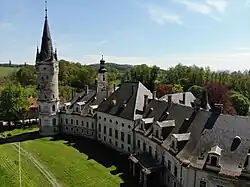 ![]() View of Bożków with the Saints Peter and Paul church on the left and Bożków Palace on the right | |