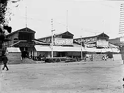 The brothers arrived in Perth in mid-1895 when Harry was 34, and purchased two 1,000 m2 (1⁄4-acre) blocks facing Wellington Street and the Perth railway station,[2] at the edge of a potato swamp.[3] The properties ("V.7-8") were purchased from W. B. Woods & Co, at a price of £42 per foot of street frontage.[4] They borrowed £62,000 and within four months, despite acute labour shortages, had built, stocked and opened a single-storey emporium on the site and named it "Boan Bros." The store opened on 7 November 1895, and almost sold out by the end of the first day of trading.[1] The original buildings were described as a single store that ran from Wellington Street through to Murray Street and appeared as "a line of iron shops".[5]