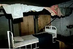 Bunk beds used by Vietnamese refugees inside the rescue ship Cap Anamur II
