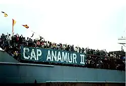 Vietnamese refugees arrive in Hamburg, summer of 1986 on the rescue ship Cap Anamur II