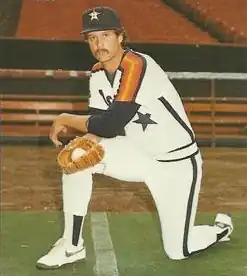 On December 8, 1980, Knepper was traded from the Giants along with Chris Bourjos to the Astros for Enos Cabell.[4] Knepper welcomed the trade, perceiving the Astros' clubhouse as strongly spiritual, and calling the Bay Area “such a liberal, almost anti-Christian society."[5] He won The Sporting News Comeback Player of the Year Award in 1981.[6] He was voted to the National League All-Star team twice (1981 and 1988). He led the National League in shutouts in 1978, with six, and in 1986, with five. He also led the league in hit batsmen in 1980, with eight, and losses in 1987, with 17.