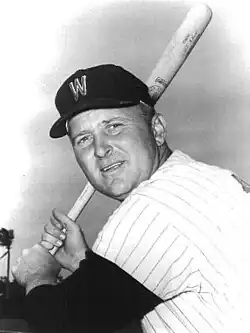 In a seven-year major league career, Schmidt played in 454 games, accumulating 317 hits in 1,305 at bats for a .243 career batting average along with 39 home runs and 150 runs batted in.[1] Schmidt led the American League in fielding percentage in 1962 while playing for the Senators.[6] He had a career fielding percentage of .988.[1] He holds the Major League record for most putouts in an extra inning game with 22, set on June 22, 1958.[7][8]