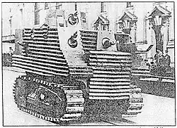 The tanks were constructed without the use of any formal plans or blueprints. Working from an American postcard depicting the conversion of a tractor to a 'tractor-tank', Bob Semple and TG Beck (Christchurch District Works Engineer), improvised the design of the tanks. Using resources available to Bob Semple as Minister of Public Works, work on the first tank commenced at the PWD's Temuka workshops in June 1940. The additional two were built at the NZR Addington Workshops.[7] The first cost £5,902, and the second and third together cost £4,323, for a total cost of £10,225 (although the Army was only billed £3,414).[8]
