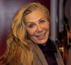 Moline-Kramer was born in Fort Madison, Iowa.[6] Her interest in the professional art field developed after she took a course at a California Community College with the Conceptual Art pioneer John Baldessari and periodic work with Allan Kaprow. She attended Art Center College of Design and later transferred to California State University, Long Beach where she received her BFA with a double major in Biology and Illustration in 1981.[7][8] Moline-Kramer has experimented with hyperrealism, mixed media experimentation, gestural abstraction, personal narrative, and deep art historical crate-digging.[8][9] She was the president and chairman of the board of the Society of Illustrators, Los Angeles, and an adjunct professor at Cal State University Long Beach.[10] Moline-Kramer's works are exhibited in Warner Brothers Studios, The Wall Street Journal, Smithsonian Institution, Carnegie Art Museum (Oxnard, California), John Kerr, and Long Beach Museum of Art.[11] Moline-Kramer began collaborating with musician Geoff Levin on ''Musical Brushstrokes" a project where they fuse music and art and turn it into a song.[12][13][14]