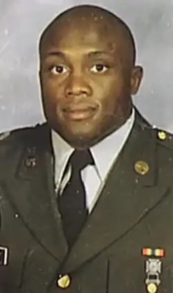 He followed his father into the United States Army after college, and continued to compete in amateur wrestling in the Army's World Class Athlete Program.[10] During his three years in the Army, he won a gold and silver medal in the International Military Sports Council senior freestyle wrestling event.[11] In 2003, while living and training in Colorado Springs with the goal of qualifying for Team USA to wrestle at the 2004 Olympic Games, Lashley witnessed a bank robbery and was forced to dive for cover to avoid gunfire; this resulted in a knee injury that required surgery, ending his amateur career.[14]