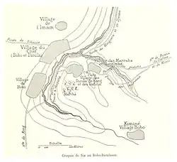 In 1896 the Bobo-Dioula, rebelling against the Watara, allied with Samory Toure in his attack on their traditional overlords, helping him to capture the nearby stronghold of Noumoudara. The local Watara leader Pintyeba appealed for help from the French, who were already established in Diebougou.[9] On September 25, 1897, the French briefly occupied Sia after a brief but bloody confrontation.[10] On November 23rd a military post was established, and later an administrative settlement on the east side of the We River. This became the headquarters of a district (cercle) of the same name, Bobo-Dioulasso. This military post was the starting point for one of the columns aiming to capture Sikasso, capital of Kenedougou, in April 1898.[11]