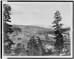 Boca was named by Judge Edwin Bryant Crocker of the Central Pacific Railroad in 1868 because of its location at the mouth of the Little Truckee River.[4] In Spanish, Boca translates to "mouth" and "river mouth". Crocker’s younger brother, Charles, was one of the four who oversaw the Central Pacific Railroad's construction and operation.[4] Boca's location at the mouth of the river and along the route of the transcontinental railroad helped turn what was a small construction camp into a settlement. Because of its extremely cold winters and abundance of trees, investors developed saw mills, ice cutting companies, and eventually a brewery in 1876.[4] The cold climate of Boca made it a perfect location for ice companies, as well a place to brew California’s first lager. It had a post office during the period of 1872 through 1945.[5]