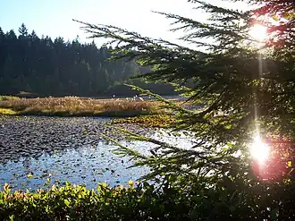 Beaver Lake is a lake in the interior of Stanley Park, surrounded by walking trails and home to many aquatic birds. This lake is being reclaimed by the forest because of the water lilies that have been added. The lily pads reduce the amount of oxygen in the water, which has slowed the lake's ability to decompose organic material. Due to this, the lake is slowly becoming a swamp.