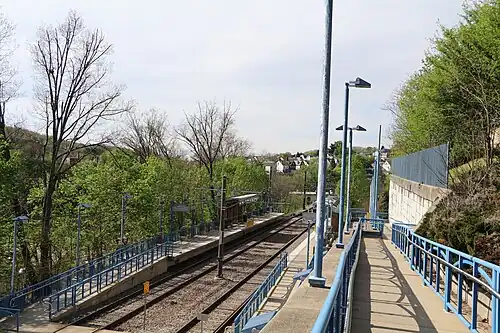 Boggs is a station on the Overbrook branch of Pittsburgh Regional Transit's light rail network. It is located in the Beltzhoover neighborhood of Pittsburgh. Boggs is a high level handicap accessible station that exits onto Boggston Avenue and Sylvania Avenue. The station serves commuters from the hilly, residential neighborhood.
