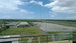 Three jet bridges protude above a seven-bay concrete apron. The apron is capable of handling four parking bays for wide-body aircraft as large as the Boeing 777 and Airbus A330 or a maximum of seven parking bays for narrow-body aircraft like the Airbus A320 and A321.[13]