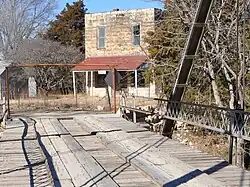 Remaining structures in Bois d'Arc comprise the former post office, a farmhouse, the bridge, and the ruins of the grist mill.