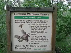 A stretch of greenbelt west of Glenwood Street in Garden City on the north side has been closed in varying degrees over the last three decades. The former Idaho state land was offered on condition that "...they shall construct certain improvements on the State land consisting of a bike path, lakes, pedestrian bridges (where the latter are required to assure a continuous linkage of greenbelt next to the Boise River for the length of the Riverside Village project)...", but these terms have never been met.[2] At one point a stretch even had a sign posted stating "Private Property. No Trespassing. This is not part of the Boise Greenbelt. Violators will be prosecuted."[3] In 2007, a ban on bicycles through this stretch was approved by Garden City Mayor John Evans. Evans oversaw construction of the Riverside Village neighborhood as the development manager for Idaho Forest Industries (IFI) and Evans Brothers Construction.[4][5]