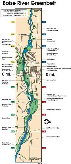 - ^ Segers, Gary (October 21, 2012). "Boise River Greenbelt has an impact on local business". Idaho Business Review. Retrieved December 17, 2015.