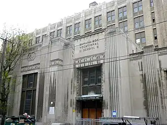 The Edward W. Bok Technical High School was a public high school in Philadelphia, Pennsylvania, designed by Irwin T. Catharine and named after literary figure Edward William Bok, editor of the Ladies' Home Journal. It was completed in February 1938 by the Public Works Administration (WPA) as a vocational high school at 8th & Mifflin Streets. As part of the Philadelphia Public Schools' Multiple Property Submission, the school was listed on the National Register of Historic Places in December, 1986. Bok High School was reorganized in 2006-2007 to prepare students for jobs in modern technology. After the 2012-2013 school year, the school was closed. In 2014, the school was renovated to become a home for over 200 businesses including restaurants, art studios, daycares, and hair salons.