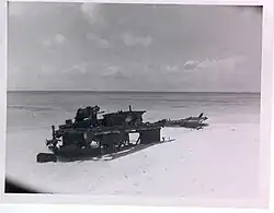 Corroded skeleton of IJN landing craft, Sibylla Island, 1953.