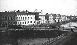 In the 15th century Bolaq's valley was covered with brake. A water of Bolaq was used for drink and dough that time. The shore protection of Bolaq was firstly realized in the Khanate's epoch. Cheremis workers set logs to the bottom of natural river. That period Bolaq was navigable channel, sluice in the mouth kept the level of Bolaq stable. The berths of Bolaq supplied for the Taşayaq trade fair. During the storm of Kazan Kazan Chronicle reported that Bolaq was already swamped and served only as defence zone. In the 19th century as a result of the city's economical development Bolaq was reconstructed, embankments were built on apartments and depots, first wooden bridges were built. The first arched stone bridge was built in 1907 by the project of Lev Kazimirovich Khrshchonovich.[1]