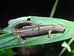 The Ecuadorian climbing salamander (Bolitoglossa equatoriana) is a species of salamander in the family Plethodontidae. It is found in Colombia and Ecuador. Its natural habitat is subtropical or tropical moist lowland forests. It is threatened by habitat loss.