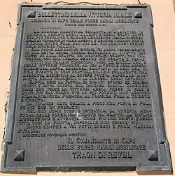 The Bollettino della Vittoria Navale was issued on 12 November 1918 by the Etna ship, which was anchored in the port of Brindisi: the latter had in fact been the main operational center of the war in the Adriatic Sea.[1]
