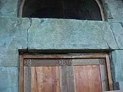 The Bolnisi inscriptions (Georgian: ბოლნისის წარწერები, romanized: bolnisis ts'arts'erebi) are the Old Georgian inscriptions written in the Georgian Asomtavruli script on the Bolnisi Sioni Cathedral, a basilica located in Bolnisi, Bolnisi Municipality, Georgia. The inscriptions are dated AD 493/494.[1] The construction of the basilica commenced in AD 478/479.[2] Bolnisi inscription yields the most explicit reference to Peroz I, the Shahanshah ("King of Kings") of the Sasanian Empire.[3] Construction of the basilica might have been connected to the accession of Peroz; their builders being encouraged in their efforts by the imperial construction projects.[4]