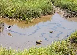 The term bolsa chica means "little bag" in Spanish, as the area was part of a historic Mexican land grant named Rancho La Bolsa Chica.[1] The reserve is also called many other names, including Bolsa Chica Lowlands, Bolsa Chica Wetlands, and Bolsa Chica Wildlife Refuge.