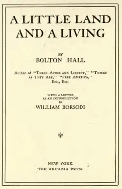 Bolton Hall (August 5, 1854 – December 10, 1938) was an American lawyer, author, and Georgism activist who worked on behalf of the poor and started the back-to-the-land movement in the United States at the beginning of the 20th century.[1]