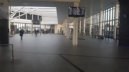Plans for the bus station, designed by architects Aedas[2] were submitted to Bolton Metropolitan Borough Council in April 2010 and were approved in June 2010. The plans were amended and a second consultation took place between October and December 2010.[3] Approval for construction was granted in March 2012.[4][5] The new station opened on 3 September 2017.[6][7]