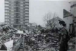Within two hours of the blast, a sectarian clash had erupted nearby at the New Lodge–Tiger's Bay interface.[18] The British Army and RUC moved in and a gun battle developed.[18] A British Army officer, Major Jeremy Snow, was shot by the IRA on New Lodge Road and died of his wounds on 8 December.[18][19] Two RUC officers and five civilians were also wounded by gunfire. Eventually, five companies of troops were sent into the district and they searched almost 50 houses.[18]
