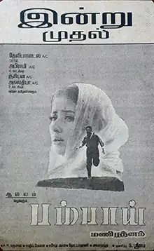 Bombay is a 1995 Indian romantic drama film[2] written and directed by Mani Ratnam, starring Arvind Swamy and Manisha Koirala. The film, primarily in Tamil and to a lesser extent Hindi,[3] tells the story of an inter-religious family in Bombay before and during the Bombay riots, which took place between December 1992 and January 1993 after the demolition of the Babri Masjid led to religious tensions between Hindu and Muslim communities. It is the second installment in Ratnam's trilogy of films that depict human relationships against a background of Indian politics, including Roja (1992) and Dil Se.. (1998).