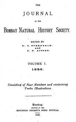 - ^ Aitken, E.H.; Sterndale, R. A., eds. (January 1886). "Introduction". Journal of the Bombay Natural Society. 1 (1). Bombay: Education Society's Press.