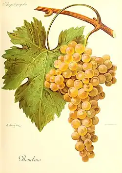 Bombino bianco is a white Italian wine grape variety planted primarily along Italy's Adriatic coast line, most notably in Apulia. The vine is prone to high yields and often produces neutral flavor wines.[1] The grape is known under many synonyms throughout Italy including Debit[2] and Pagadebit, names which came from the grape's reputation for being a high yielding and reliable crop for vineyard owners to grow that would assure them that on each vintage they could pay off their debts.[3][4][5]