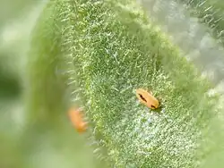 White larvae gradually turn into a yellowish brown pupa, with distinct mouthparts, wings, antennae, and legs.[9]