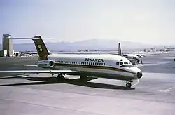 Bonanza ordered three BAC One-Elevens in October 1962; this request was denied by the federal Civil Aeronautics Board (CAB), although U.S. authorities allowed American Airlines, Braniff International Airways, Aloha Airlines and Mohawk Airlines to purchase the same aircraft.[18][19] An order was then placed for the U.S. built equivalent, the Douglas DC-9 series 10. Deliveries of the DC-9 began in late 1965 and flights commenced on March 1, 1966. The DC-9s, dubbed Funjets,[20] flew the following routes in the first year: Las Vegas—Reno, Las Vegas—Los Angeles, Reno—Los Angeles, Salt Lake City—Phoenix, and Reno—Las Vegas—Phoenix.[21] The headquarters moved to Phoenix during 1966.[22][23]