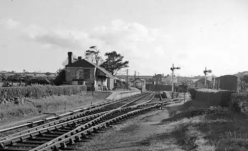 Boncath developed into a larger settlement when the Whitland and Taf Vale Railway was extended to Cardigan in 1885.[10] Boncath railway station, opened in September 1886, was a two-platform stop between Crymmych Arms and Kilgerran Halt on the Whitland and Cardigan Railway, known as "Cardi Bach". The line was closed due to the 1963 Beeching Axe and the station building became a private residence.[11]