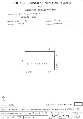 - ^ a b "Bonegilla House". New South Wales State Heritage Register. Department of Planning & Environment. H00617. Retrieved 28 May 2018.