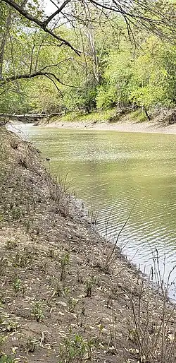 The stream source is at 38°34′45″N 90°39′14″W / 38.57917°N 90.65389°W and the confluence is at 38°40′48″N 90°34′10″W / 38.68000°N 90.56944°W.[1]
