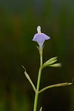 It is a prostrate or diffuse herb usually rooting at nodes. Sub-sessile, hairless leaves are elliptic or obovoid. Solitary pale blue flowers have a yellow mouth. August to October is the flowering and fruiting season.[3][4] In Australia this species is confined to northeastern Queensland. Flowering there occurs through much of the year, with a peak of activity around April and May (statistics from iNaturalist based on 18 observations in Australia as at 17 April 2024).[5]