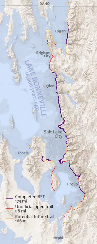 - ^ "BST Coalition Annual Report 2016" (PDF). Bonneville Shoreline Trail. Archived (PDF) from the original on October 10, 2017. Retrieved April 19, 2020.