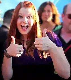 After her stint on The Quest, Gordon formed the nerd parody band Library Bards in 2014 with friend and fellow reality TV star Xander Jeanneret. Their first song, "Gandalf" (a parody of Taylor Swift's "Shake it Off") was created in collaboration with the fan site theonering.net,[9] and debuted before the final installment of the Hobbit films. The song debuted as #1 in the comedy genre in Los Angeles on the music website ReverbNation, #2 nationally, and #3 globally in December 2014.[10] The Library Bards continued to hold a top spot in the Comedy genre in Los Angeles,[11] and have been featured on CBS' Celebrity Name Game, SyFy's Geeks Who Drink and on the legendary Dr. Demento Show.[12][13][14]