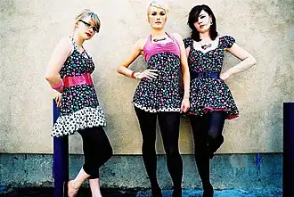 The group have been described as “an experiment” in reviving the late-1950/early-1960s girl group pop aesthetic,[8][9] though members of the band emphasized that they were not a “manufactured” studio creation.[8] Their name, which is a reference to a laboratory instrument, is a nod to the experimental origins of the group, and also an allusion to similarly named groups (the Ronettes, the Bobbettes, etc.) and the Pips.[3][8][9] The male backing musicians, the Cassettes,[10] never appear in interviews or photo shoots, emphasizing the role of the singers. The three frontwomen wear polka dot dresses with synchronized choreography being a major part of their live shows, whereas the Cassettes can be seeing wearing knitted tank tops with their initials sewn onto them. All songs are credited to the Pipettes as a whole. Generally one member has a concept and basic outline for a song, on which the other members subsequently have an input as to arrangement or lyric changes.[6] As a result, all members share credit on their original songs.