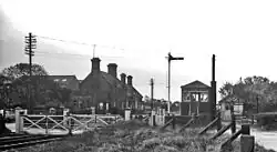 A level crossing with hand-operated gates (and supervising signal box) links the platforms, which both have step-free access from the road.