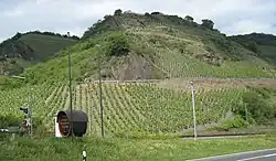 Boppard is characterized by winegrowing, which had its first documentary mention in 643. With 75 hectares (190 acres) of planted vineyards, Boppard is the biggest winegrowing centre in the Middle Rhine wine region. Grown here are Riesling, Müller-Thurgau and Pinot noir. Together with Boppard's various other attractions (see above), winegrowing stands as the basis for the town's tourism industry.