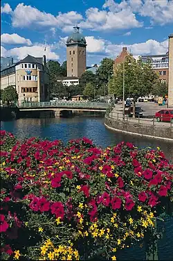 The city arms depicts two pairs of sheep shears, a tribute to the vast number of smiths in the town in early history. It currently holds the Swedish record in the number of established mail-order firms.