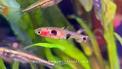The dwarf rasbora (Boraras maculatus) is a species of ray-finned fish in the genus Boraras, native to freshwater habitats of southeast Asia. It grows to be about 10–20mm (0.4–0.8 inches) long at adulthood, the maximum length can reach 25mm (1 inches). Dwarf Rasbora are shoaling fish which means they are always in groups of 8 fish or more. They are very peaceful species that don't harm anyone or anything.[3]