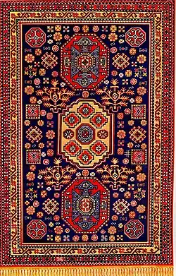 Borchaly (Azerbaijani: Borçalı) describes a sub-category within the Gazakh group of Azerbaijani[1] carpets, even though the region from which they originate is now within Georgia.[2][3] The name of this carpet is associated with the name of the Borchaly region, located to in southeastern Georgia close to the border of Gazakh district, Azerbaijan. Large villages of this region including Gurdlar, Akhurly, Kachagan, Sadakhly (Sashikhly), Dashtepe and Lembeli were once famous for carpet weaving,[4] though in recent decades the art of carpet weaving has almost entirely died out,[5] leaving only two known villages where Borchaly style carpets are still woven: Kosalar and Mughanlo (formerly Iormughanlo).[6] The population of Borchaly (now known as Marneuli) including the above-mentioned villages consists mainly of ethnic Azerbaijanis.[1][7]