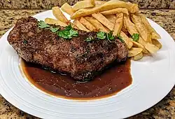 A bordelaise sauce in traditional New Orleans-style Louisiana Creole cuisine is different from the French classical version, although both are available in the city. The basic flavor is garlic rather than red wine and bone marrow. Another sauce called "bordelaise" in New Orleans consists of butter, olive oil, shallots, parsley and garlic.[1]