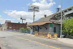 The Borden Avenue Bridge is a retractable bridge in New York City,[3] in the Long Island City neighborhood of Queens. It carries vehicular and pedestrian traffic across Dutch Kills, a tidal waterway that is a tributary of Newtown Creek.[4] The main span is 84 feet (26 meters) long, and it retracts by sliding on rails. It was last retracted to allow marine traffic to pass in 2005.[4] It was designed by Edward Abraham Byrne and opened on March 25, 1908.[3]