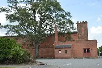 Borden Manufacturing Company, also known as Goldsboro Cotton Mills and Wayne Cotton Mills, is a historic factory complex located at Goldsboro, Wayne County, North Carolina. The complex includes the Goldsboro Cotton Mills (1892), Goldsboro Smokestack (1905), Goldsboro Boiler Room (c. 1940), Borden-Goldsboro Pedestrian Bridge (c. 1940), Borden Manufacturing Company (1900), Borden Water Tank (c. 1930), Borden Auto Garage (c. 1915), Borden Reservoir (c. 1900), Borden Reservoir Pump House (c. 1920), Borden Railroad Siding Tracks (c. 1900), Borden Conditioning Room (c. 1915), and Borden Storage Building (c. 1920). The Goldsboro Cotton Mills is a two-story, 16 bays long, gable-front, brick building with Italianate style detailing. It features a central three-story square tower, three bays in width.[2]