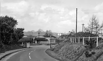The station building was constructed of corrugated iron on steel framing and stood on a short brick wall. Extra traffic during the First World War led to the extension of the station and the addition of a wooden canopy on its platform side. The station also had a small engine shed which was used in the line's early days for overnight stabling of engines. The shed was later to be damaged by an engine running through its rear, and it was left afterwards to become derelict. Eleven railway cottages were constructed by the London and South Western Railway near the station to accommodate staff: all were either semi-detached or terraced except no. 8 which was the stationmaster's residence. A small wooden signalbox located at the approach of the station completed the layout.[1]