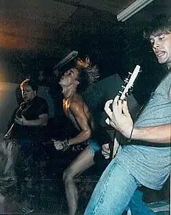 The longest-lived BSY lineup was Hathaway, Tague, Walker, Steve Sonic (guitar) and Brian Molin (bass). The band's work of this era is best captured in the Live at the Drama Lab recordings; another recording featuring this lineup[3] appears on the compilation lp "Method To Our Madness" issued by Phantom Records in 1986.[4] Sonic joined BSY after the disintegration of seminal Orangeburg, South Carolina punk band Red Menace, which had blazed trails of its own in the early 1980s. Later lineups of BSY would feature two other former members of Red Menace: Kenny "Jolt" Gillam (drums) and Carl Van Sewell (bass).