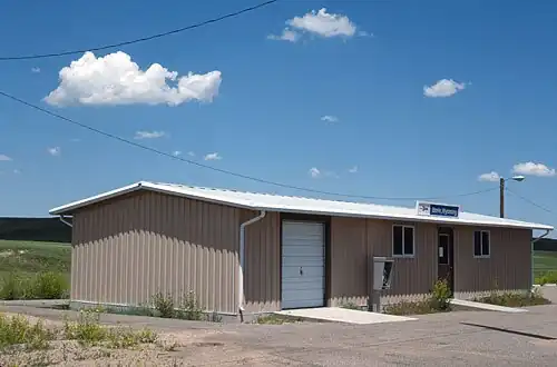 The station at Borie was built to serve as the Cheyenne-area stop for the San Francisco Zephyr in lieu of the Cheyenne Depot's closure after 1979.[1] The design of the station house was very similar to other stations that followed the minimal "Amshack" aesthetics.[1] The station was built outside of a siding in the small locality of Borie, Wyoming, west of Cheyenne.[1] This eliminated a time-consuming backup move in and out of the Cheyenne station, but forced riders to utilize a shuttle bus to reach the city 10 miles (16 km) away from the station.[2][3]